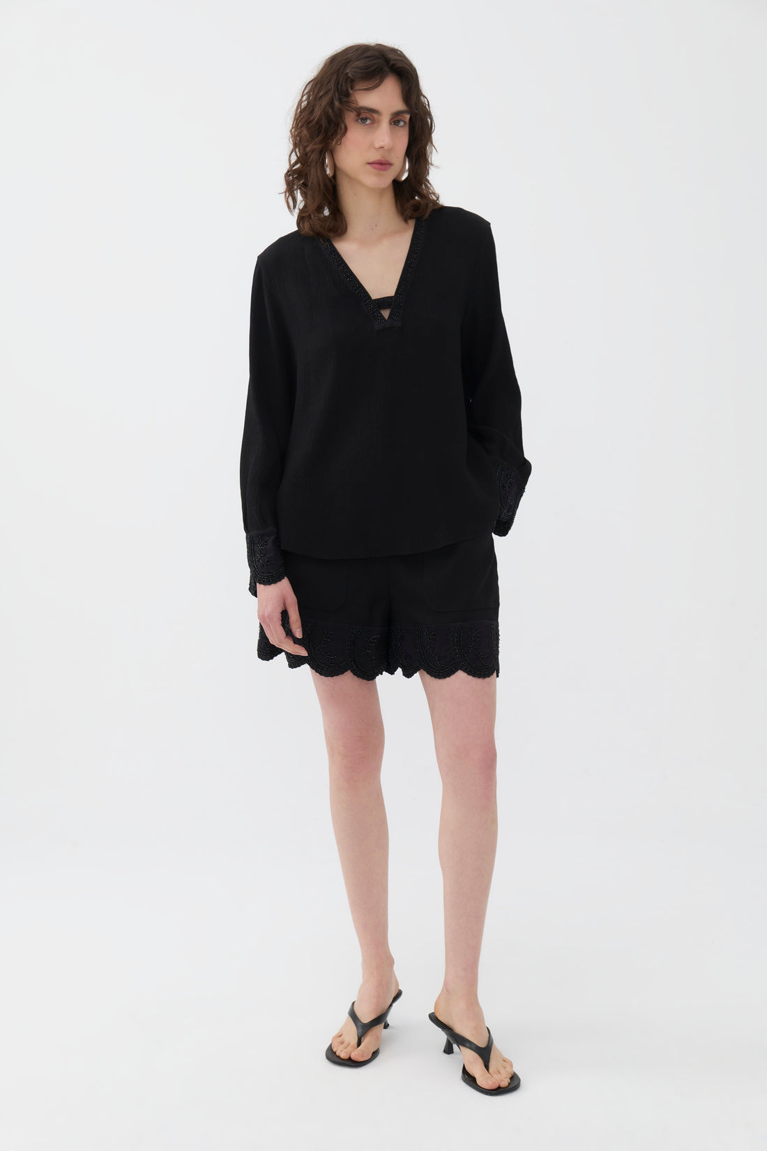 Women’s shorts are incredibly versatile and can be paired with a wide range of tops and accessories to create looks suitable for various occasions. Whether you're aiming for a casual, sophisticated, or chic appearance, the possibilities are endless. Nocturne offers a broad selection of blouses, shirts, tops, and jackets that complement our women’s shorts collection, allowing you to mix and match for the perfect outfit.