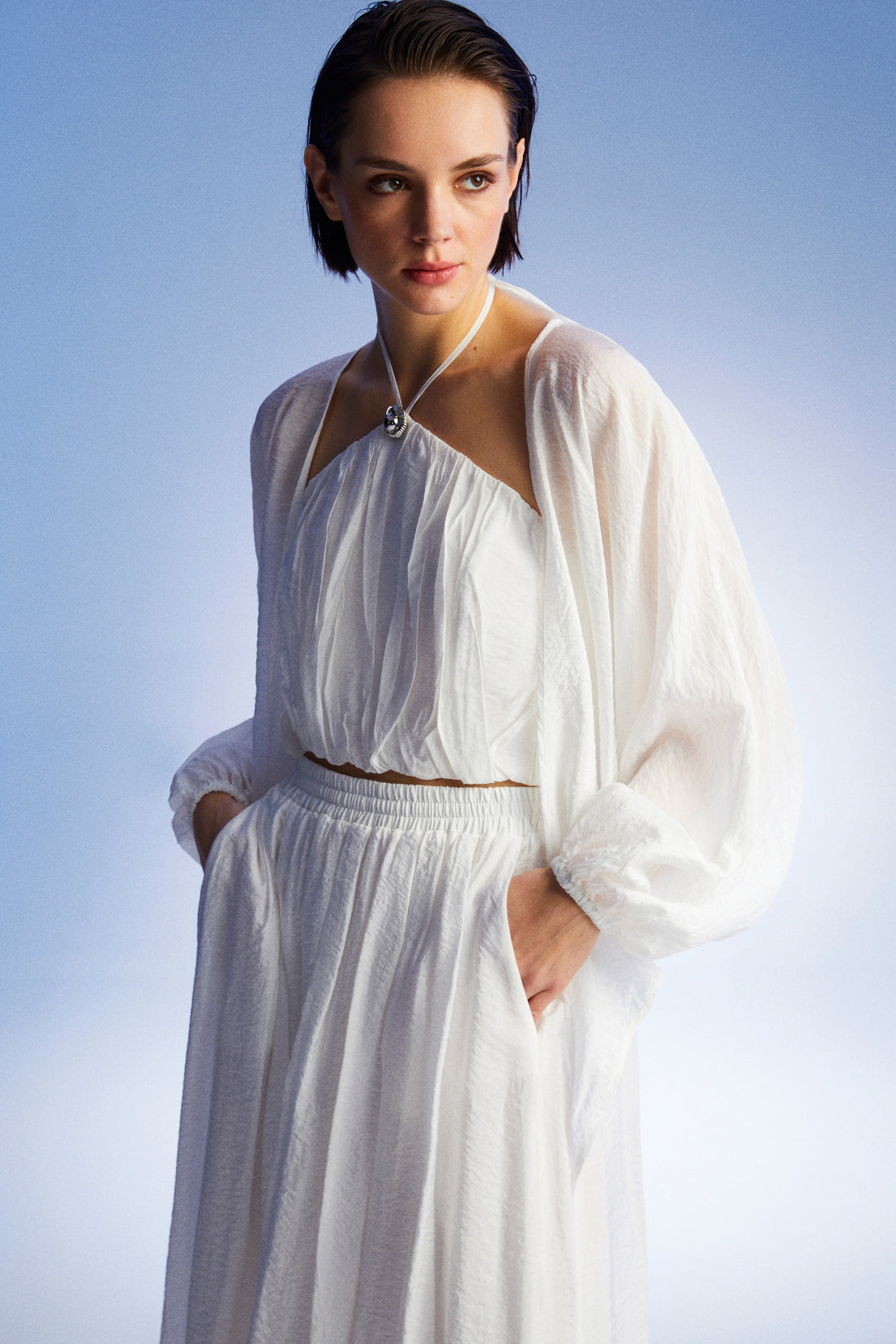 Printed Double-Breasted Crop Top- Regular price