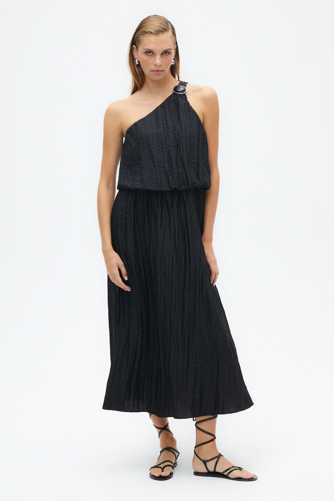One Shoulder Dress with Accessory Detail- Regular price