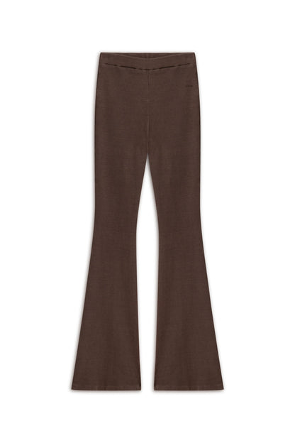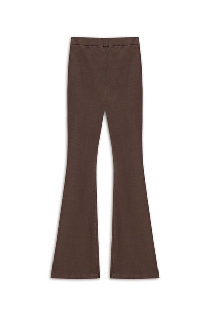 Coffee Ribbed Flared Trousers