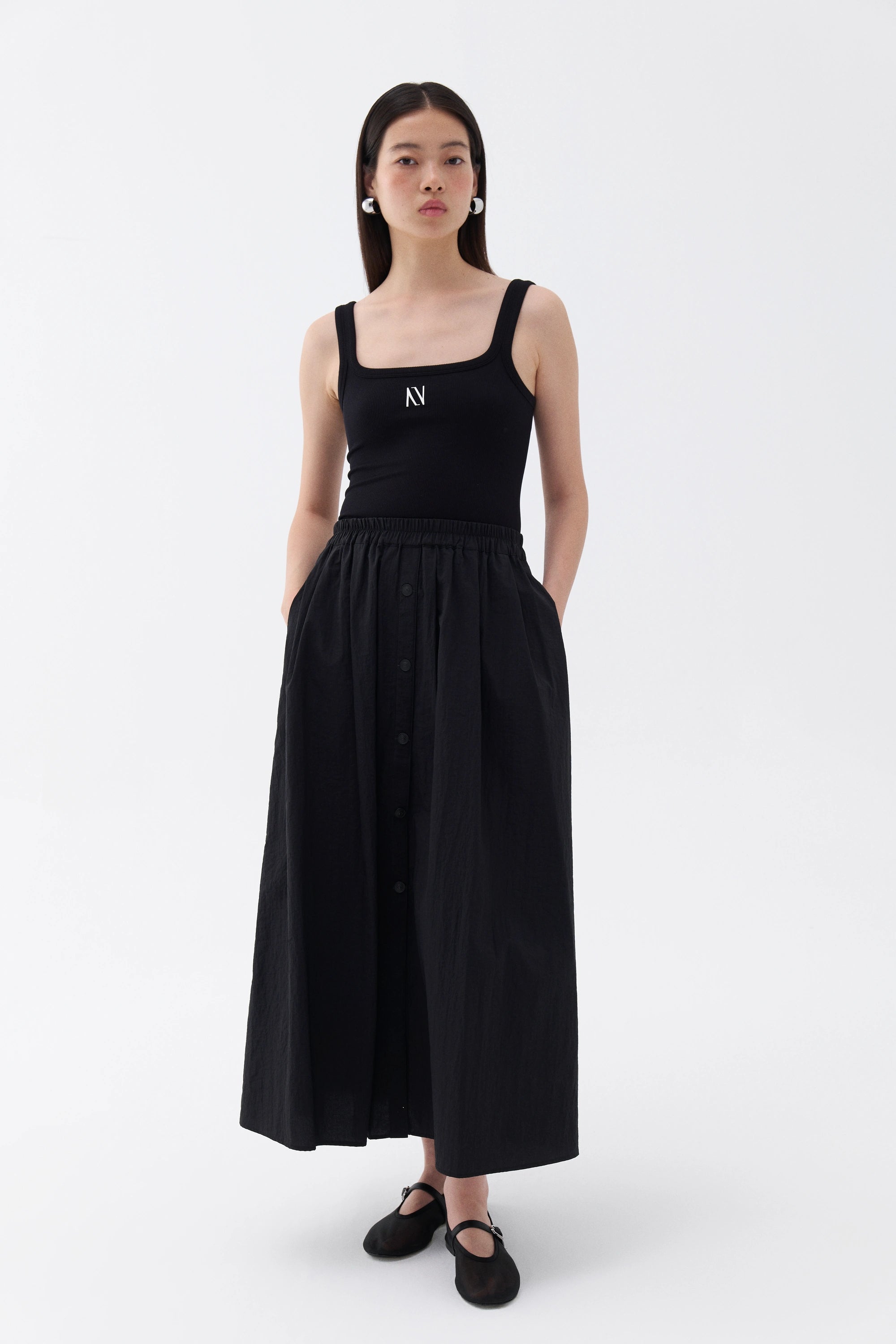 Perfectly comfortable. The Modern Ribbed Wide Strap Bodysuit by Nocturne will be your new go-to style for those laid-back days.