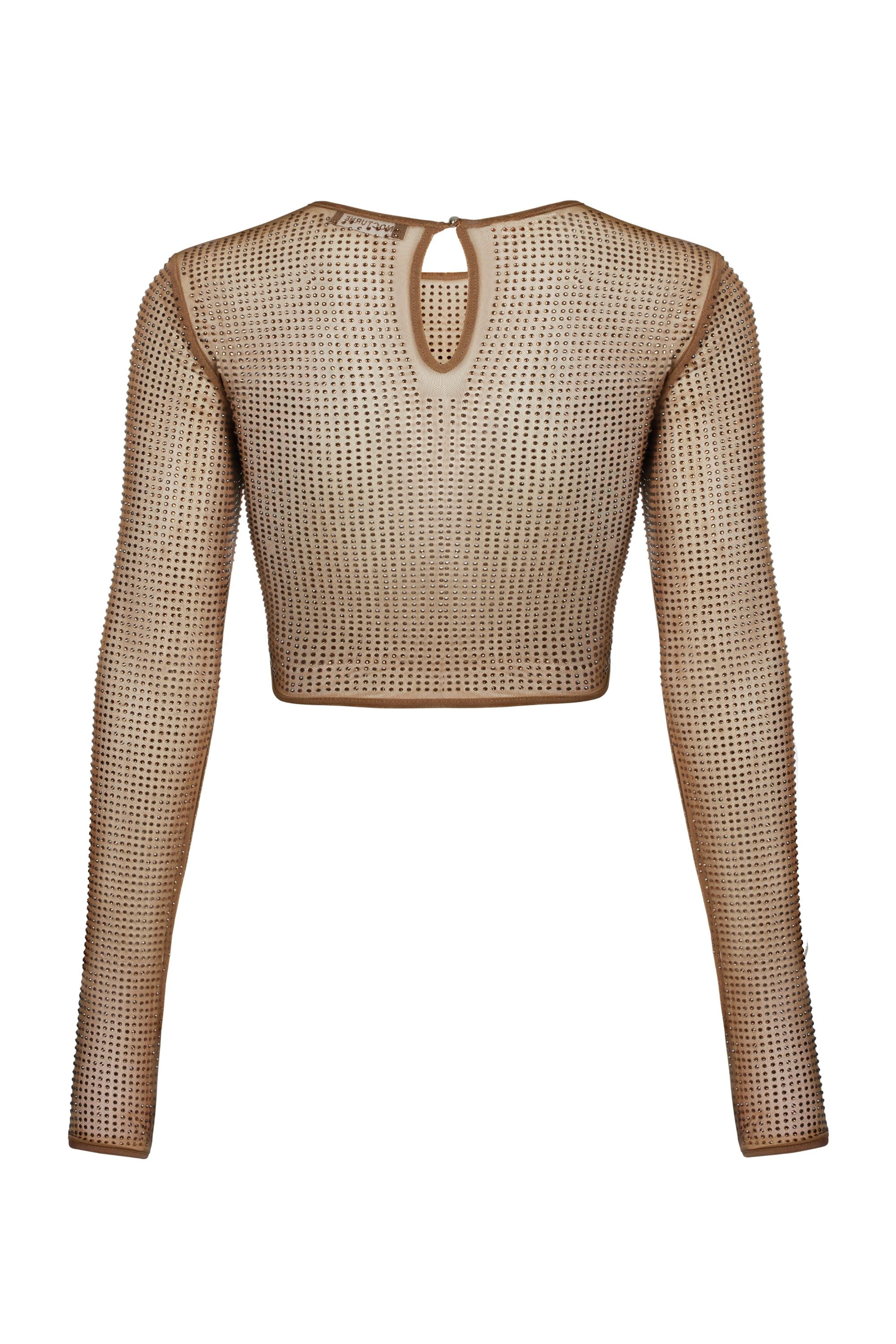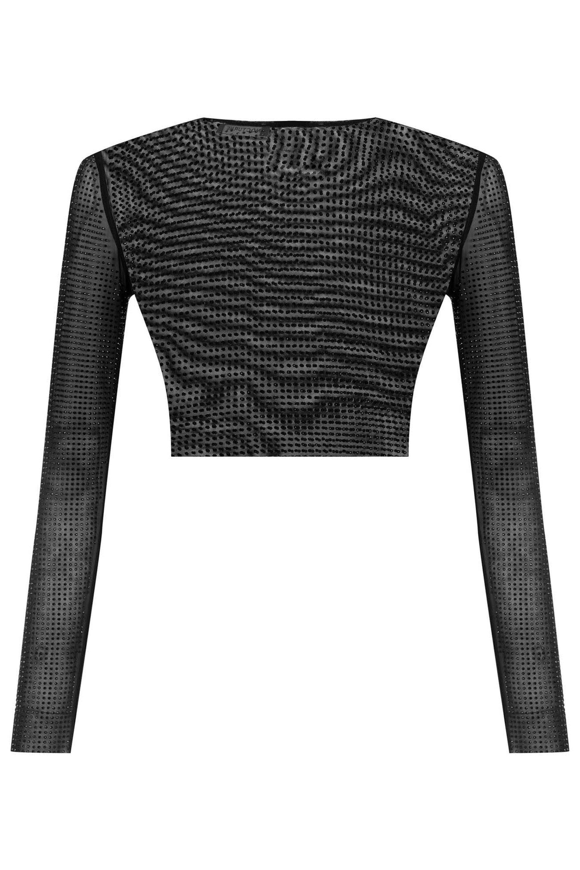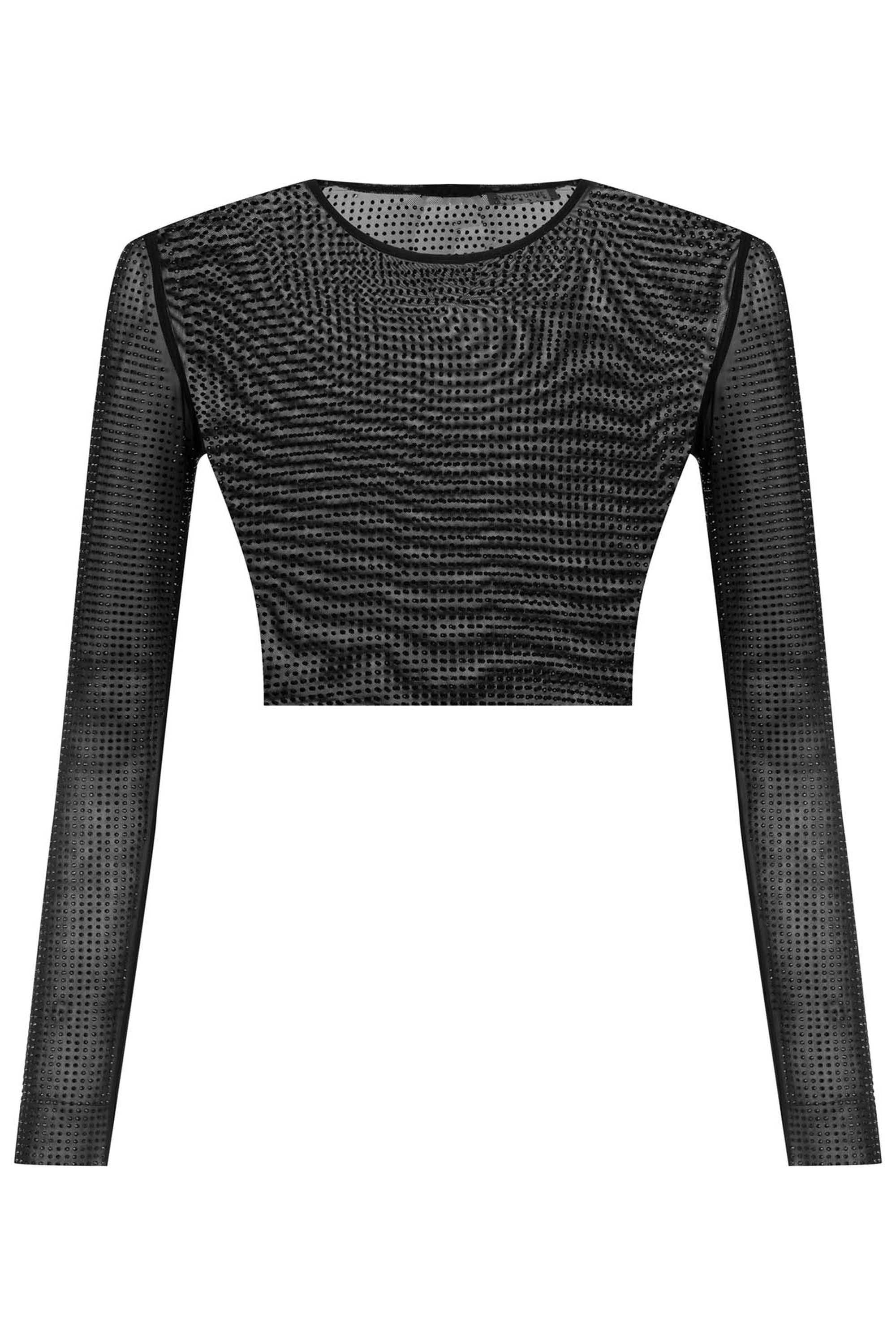 Elevate your wardrobe with this stunning embellished tulle crop top from Nocturne. Crafted from soft Lycra tulle and decorated with eye-catching rhinestones, this top adds a touch of glamour to any outfit. Perfect for special occasions or elevating everyday looks, it offers both style and comfort. Refresh your collection with this versatile piece that promises to turn heads and keep you feeling confident all day or night.