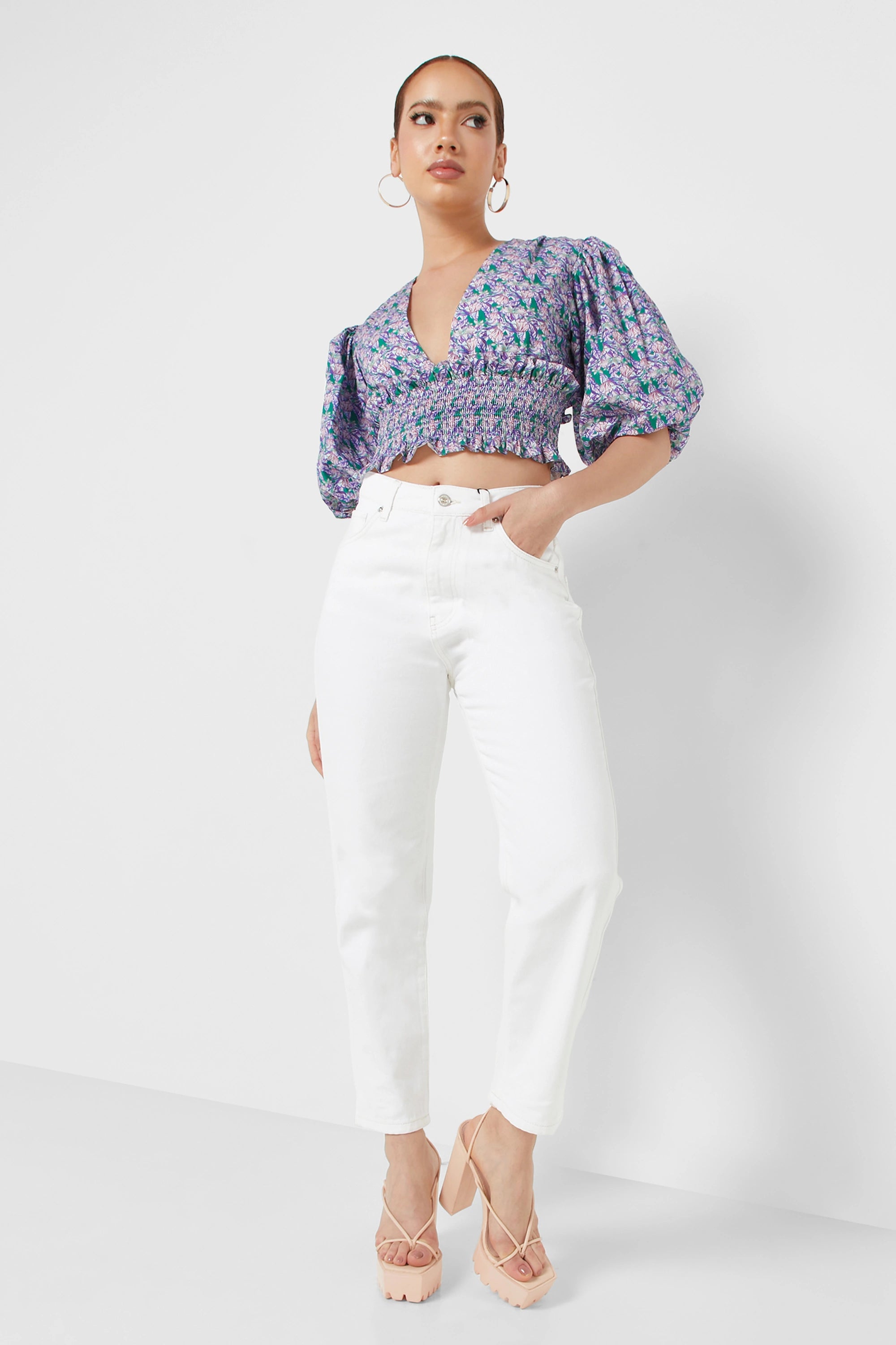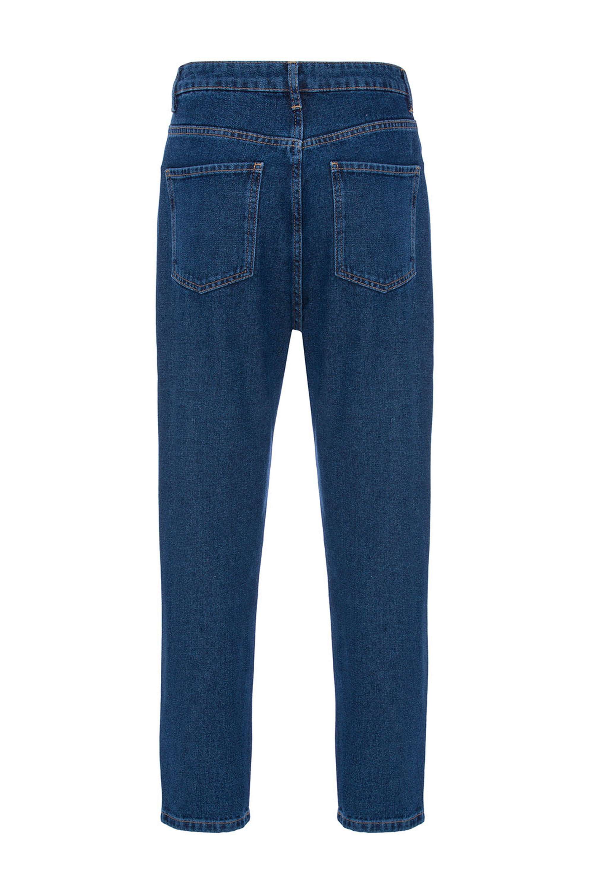 High-waisted mom jeans with side pockets. Button and zipper closure.