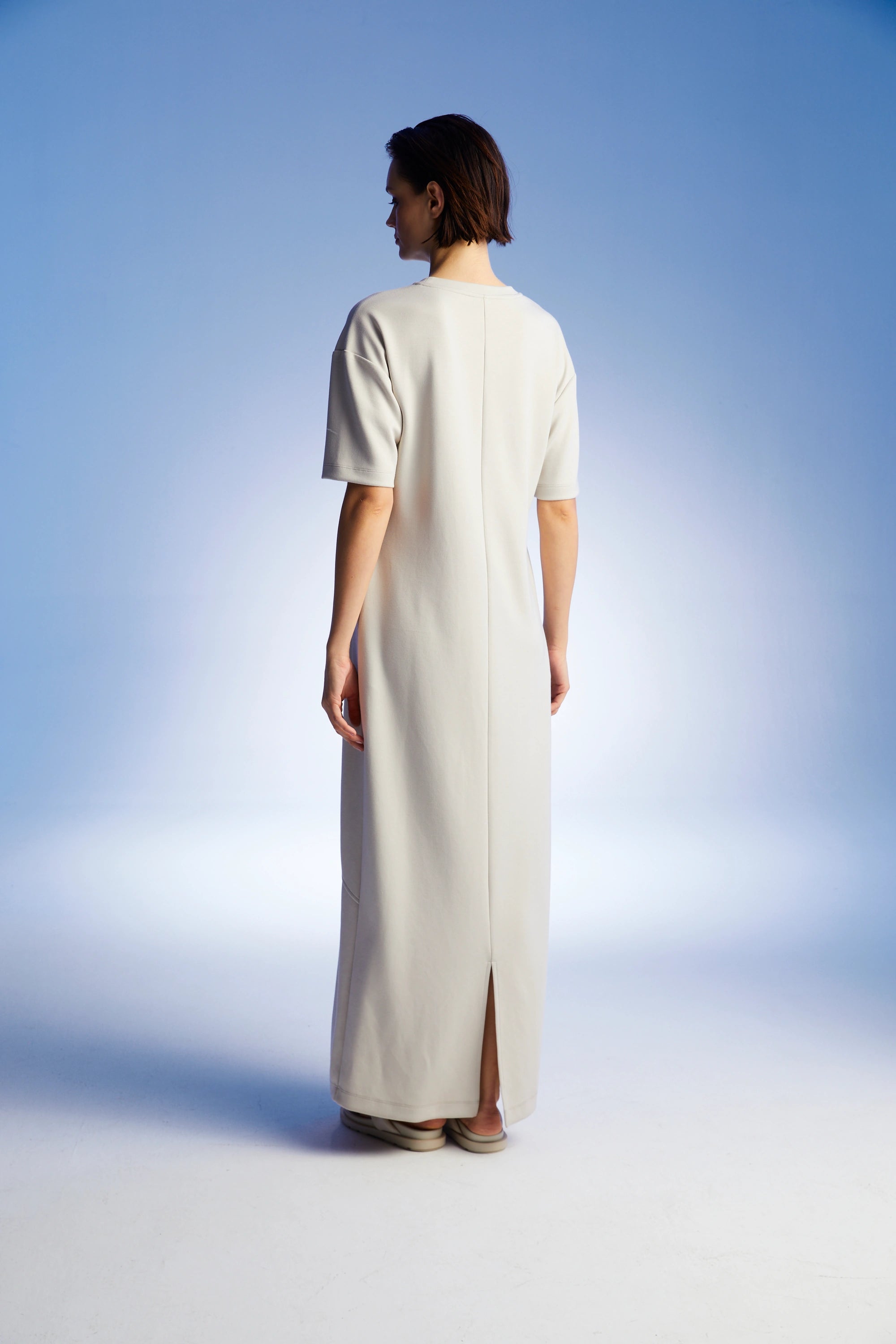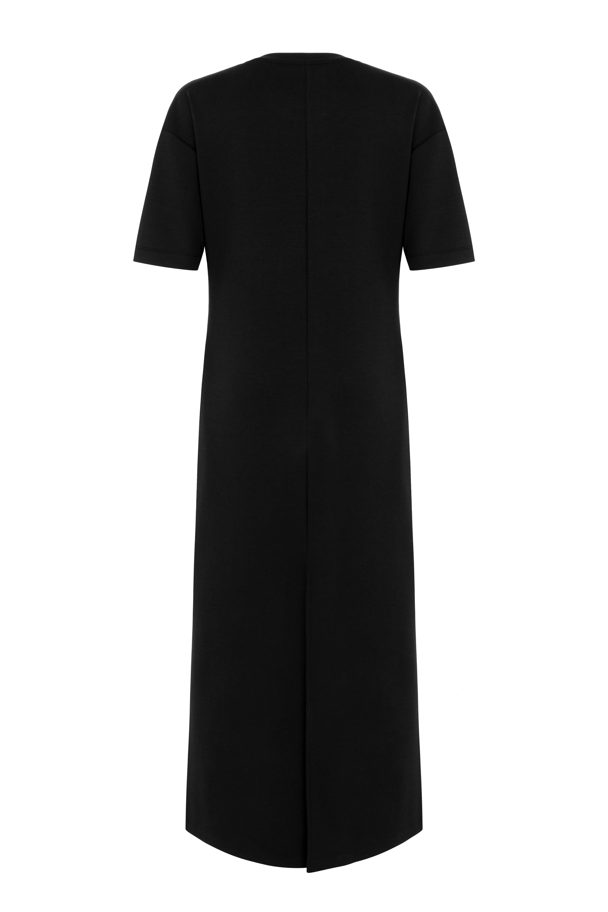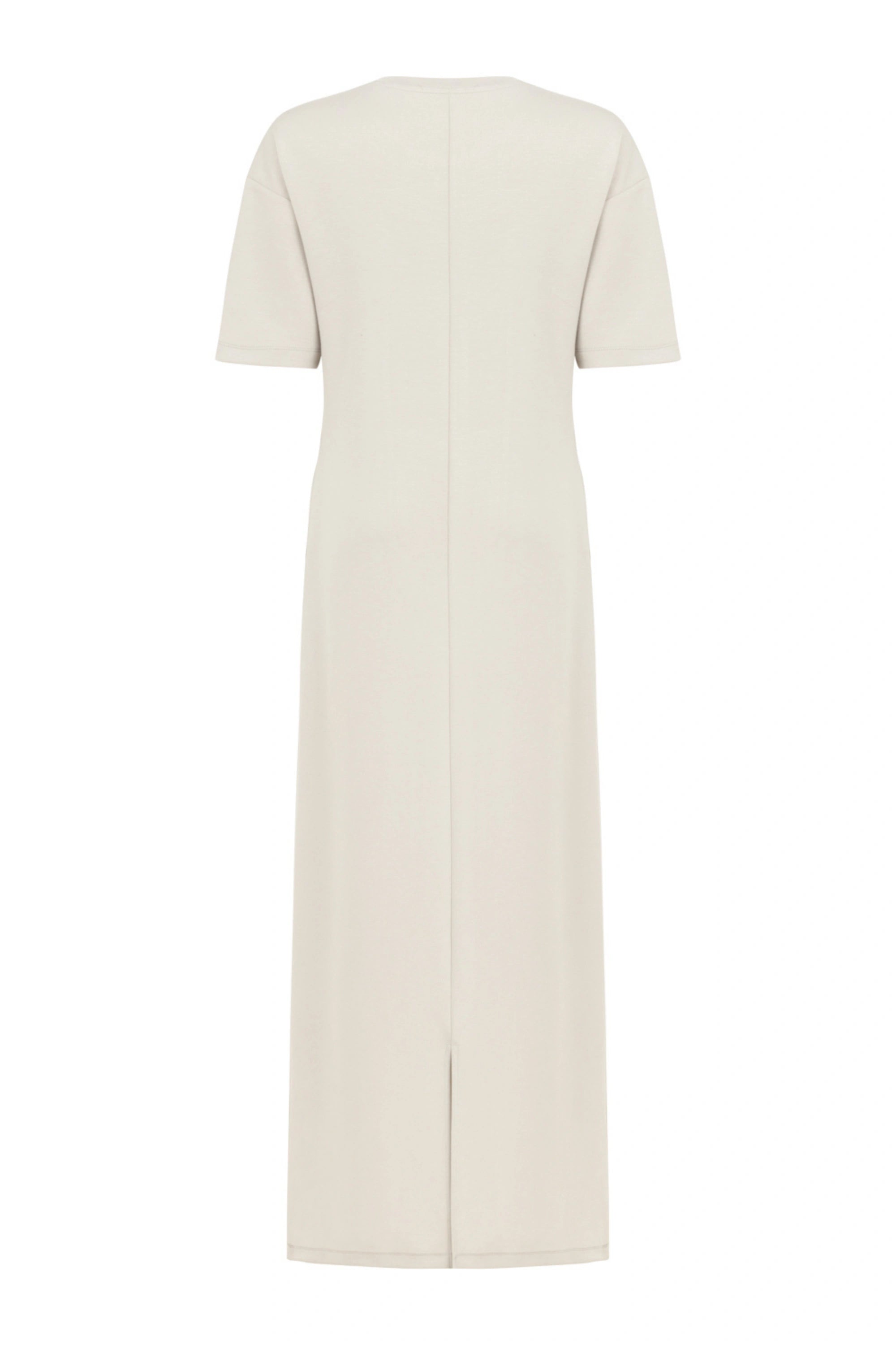 This long dress from Nocturne features a crew neck and short sleeves, designed to embody modern elegance with a subtle cutout detail. Perfect for a variety of events, it offers a refined silhouette that suits any occasion this season.