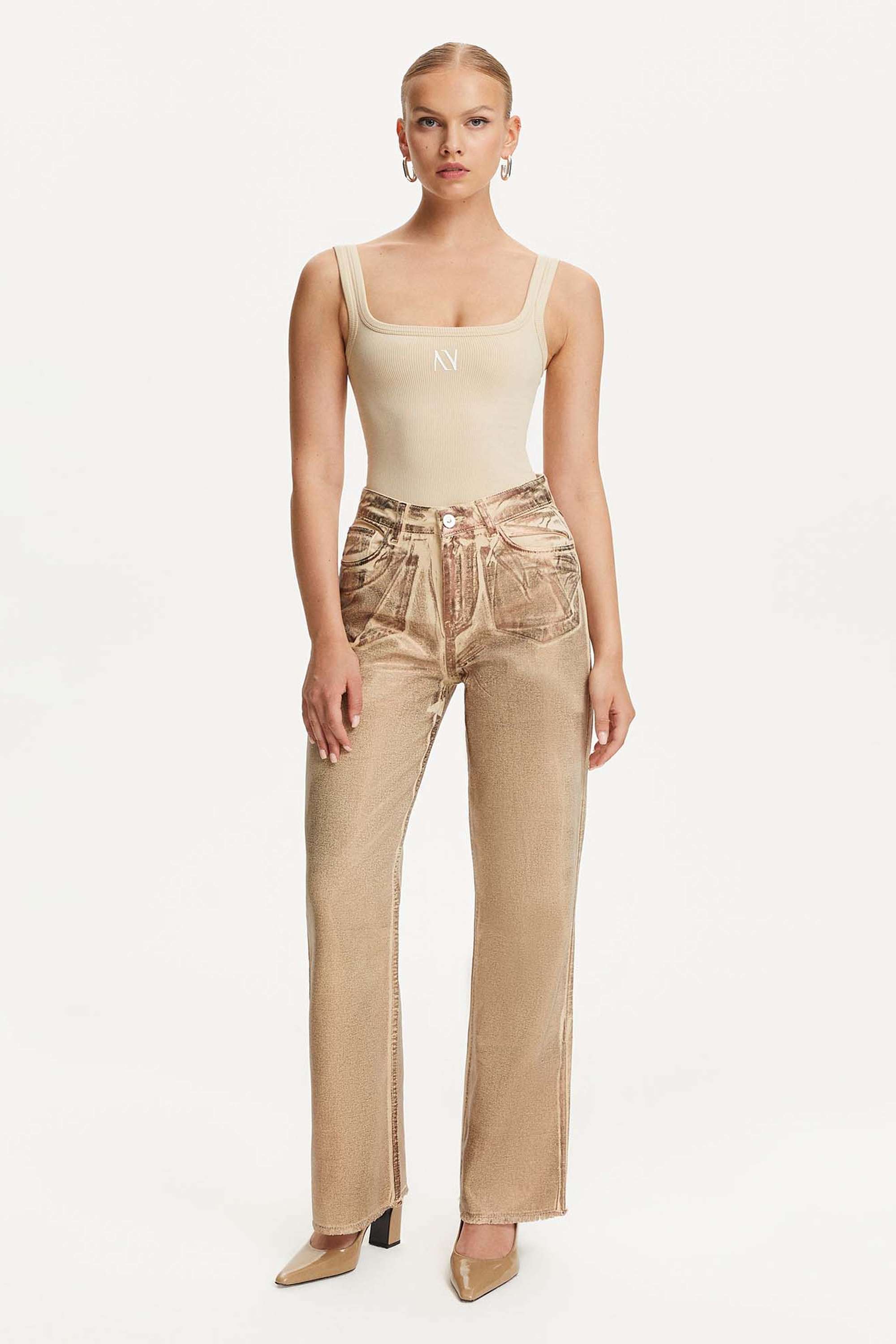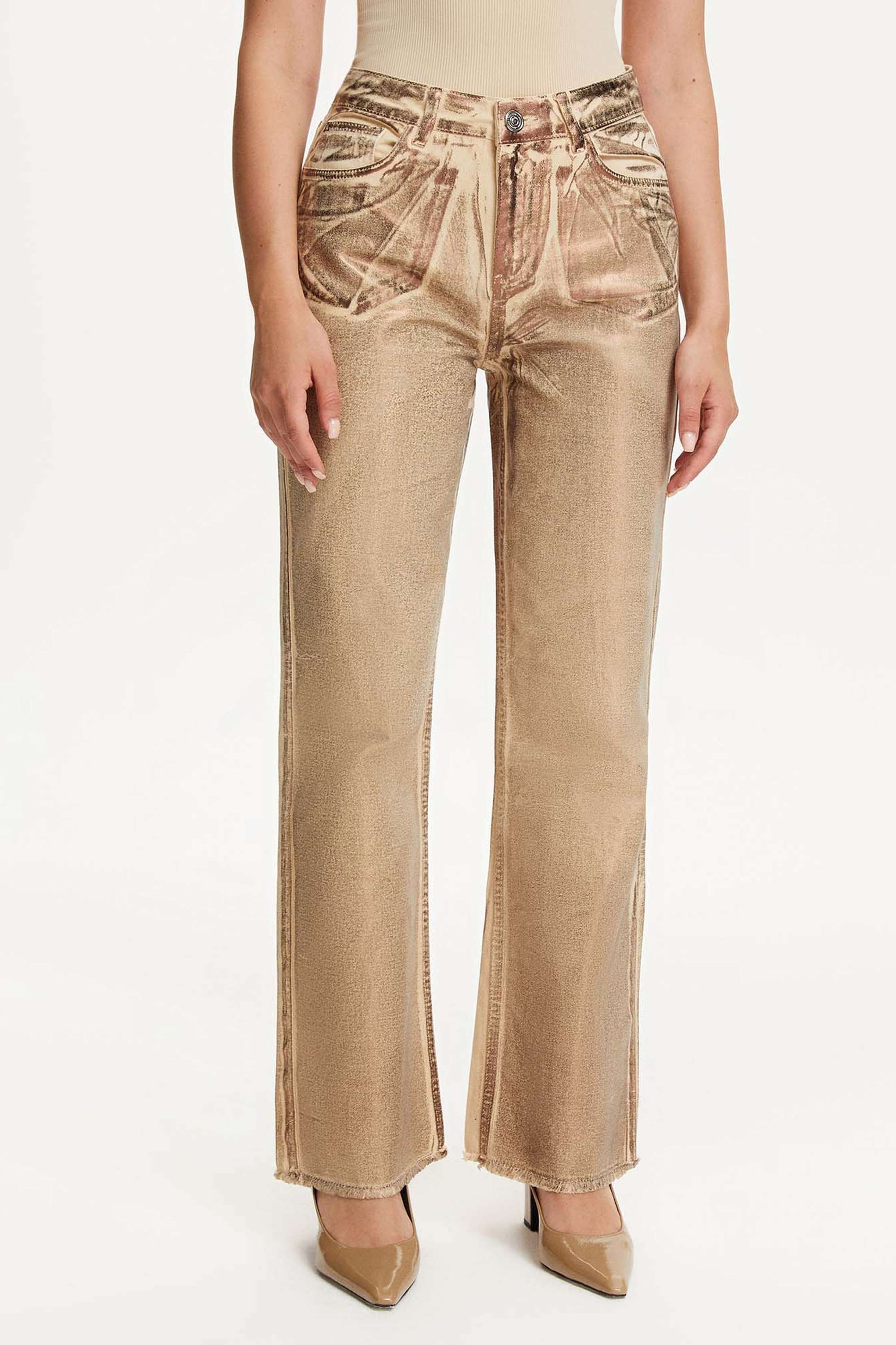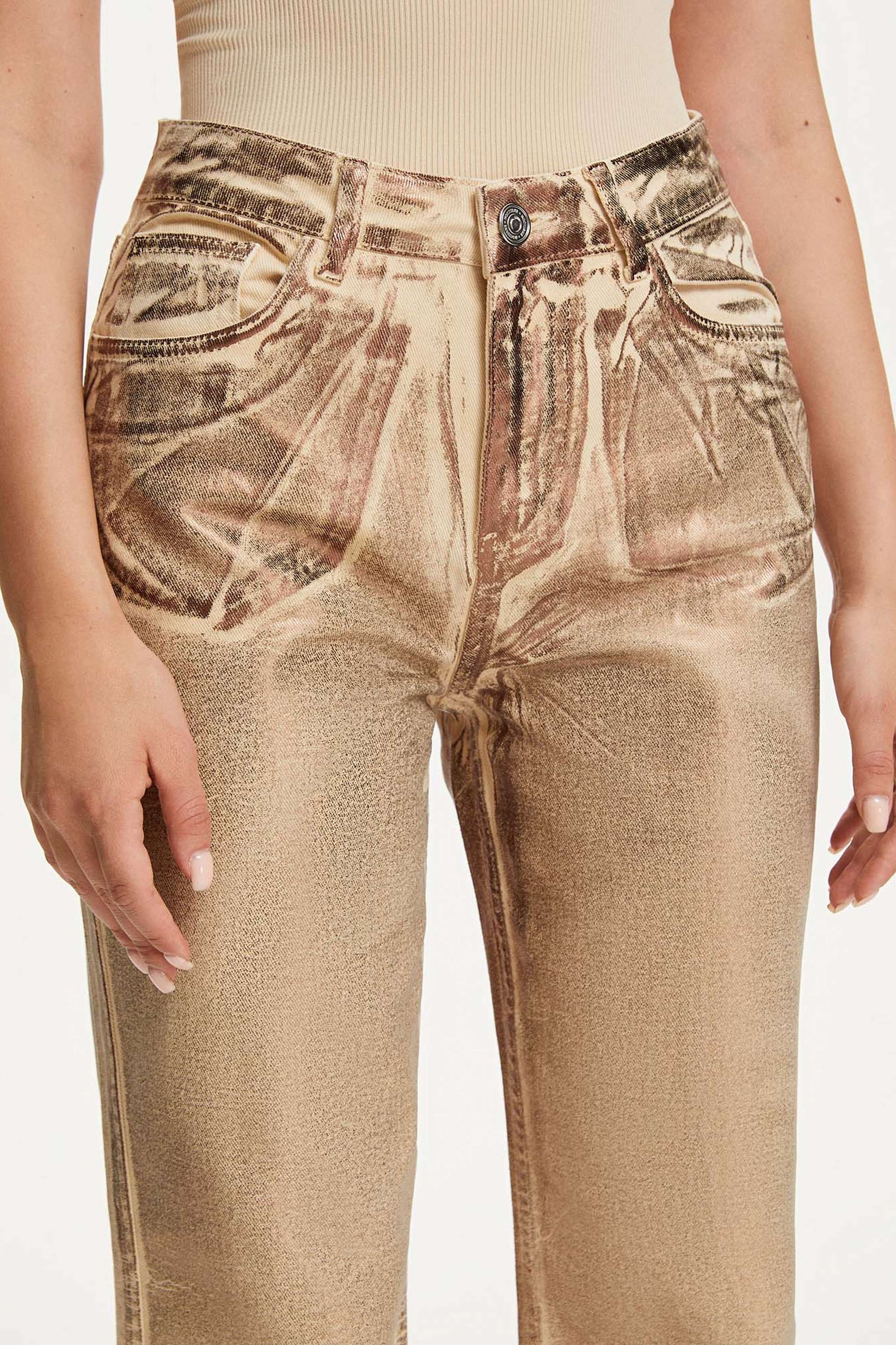 Metallic Straight Leg Jeans can be perfectly paired with a variety of fashionable tops, jackets, and shoes to wear your own style.